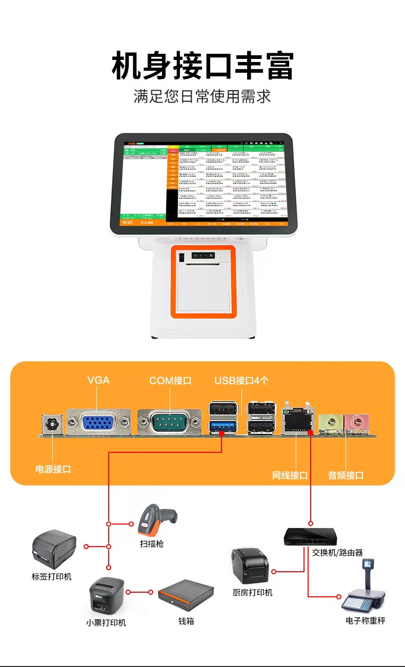 15.6吋雙屏觸摸屏超市餐飲奶茶服裝一體機